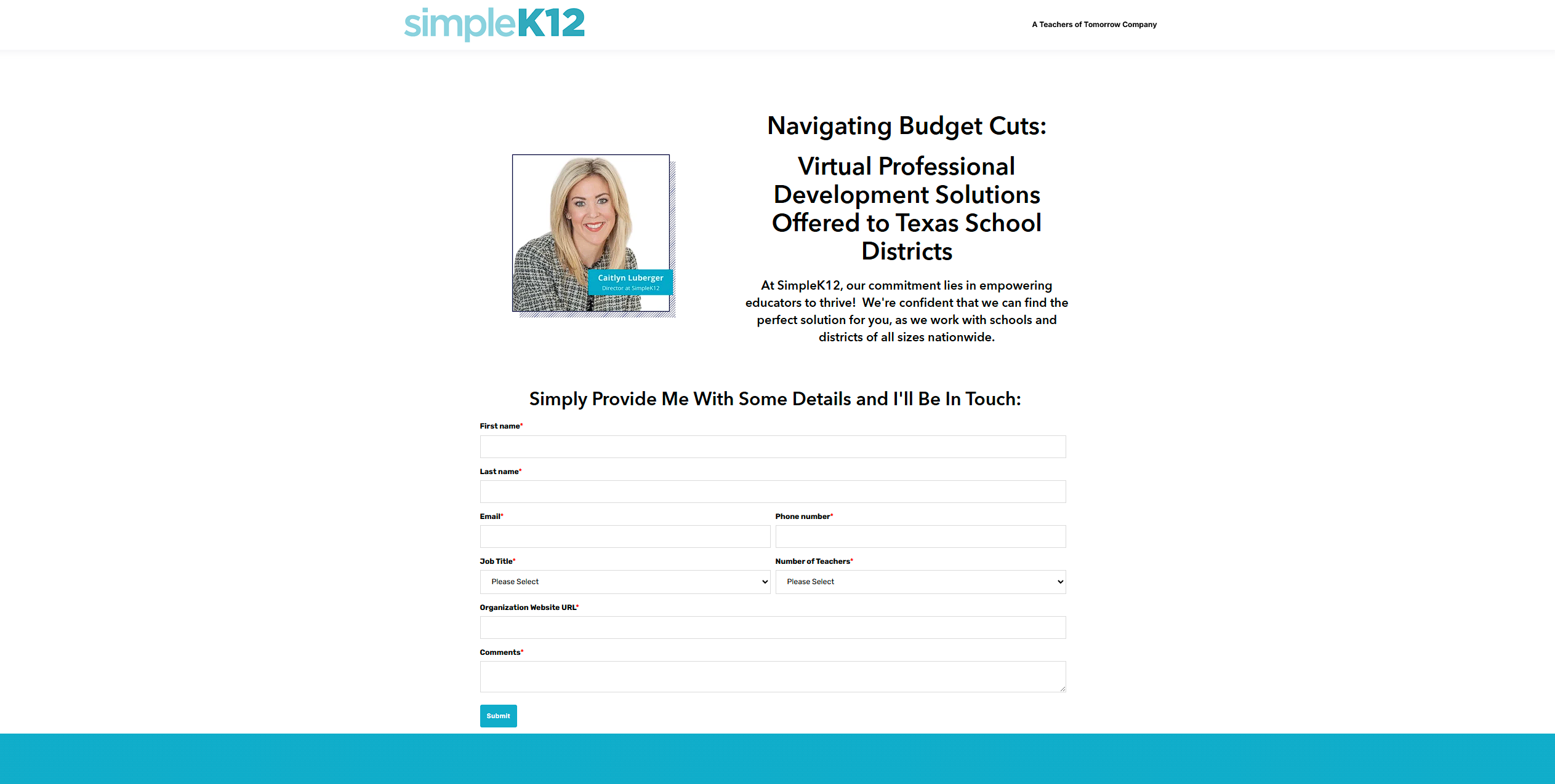 This page showcasing SimpleK12’s virtual professional development to empower educators statewide.