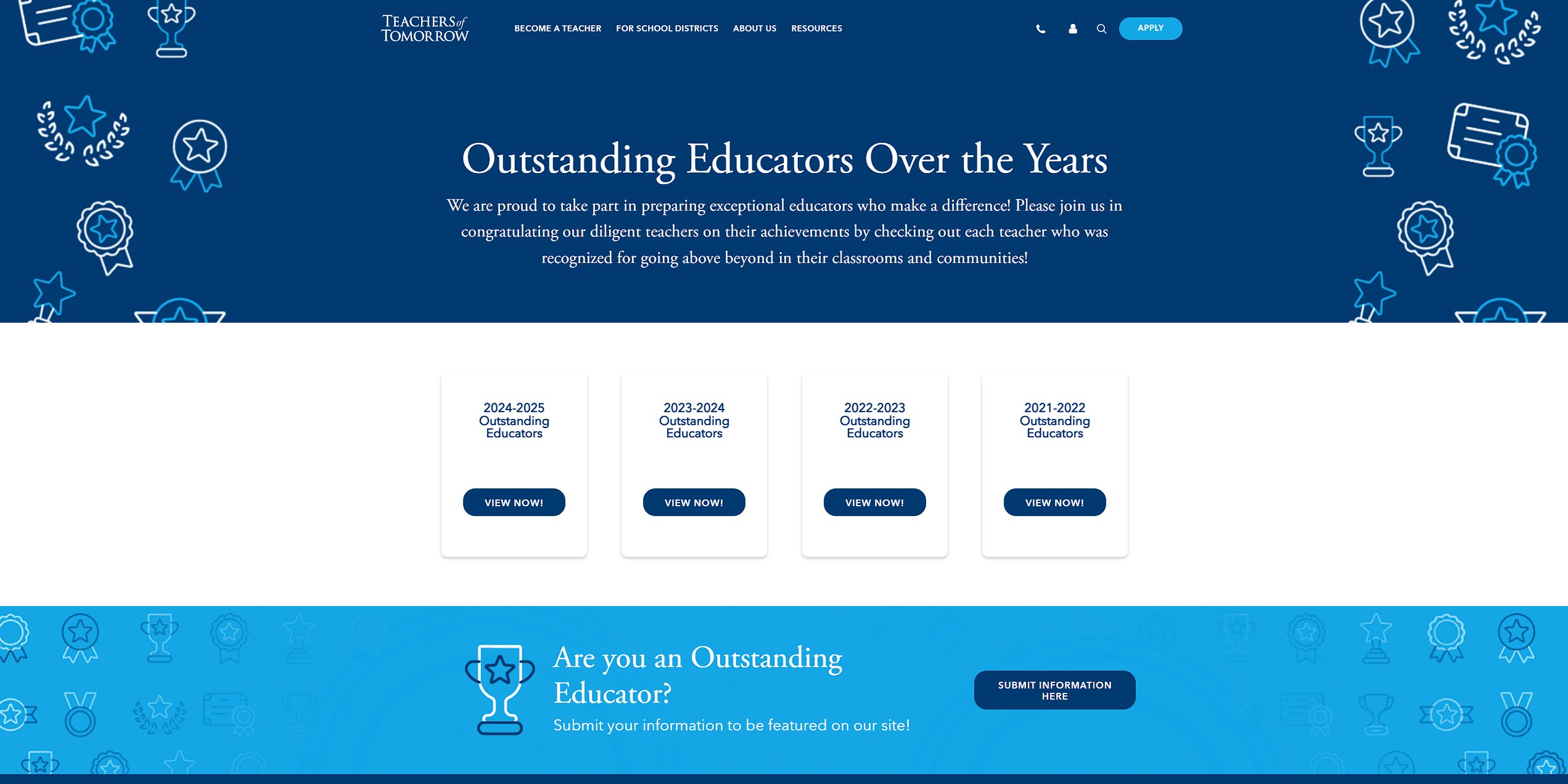 This page celebrates standout Teachers of Tomorrow making an impact in their classrooms and communities.