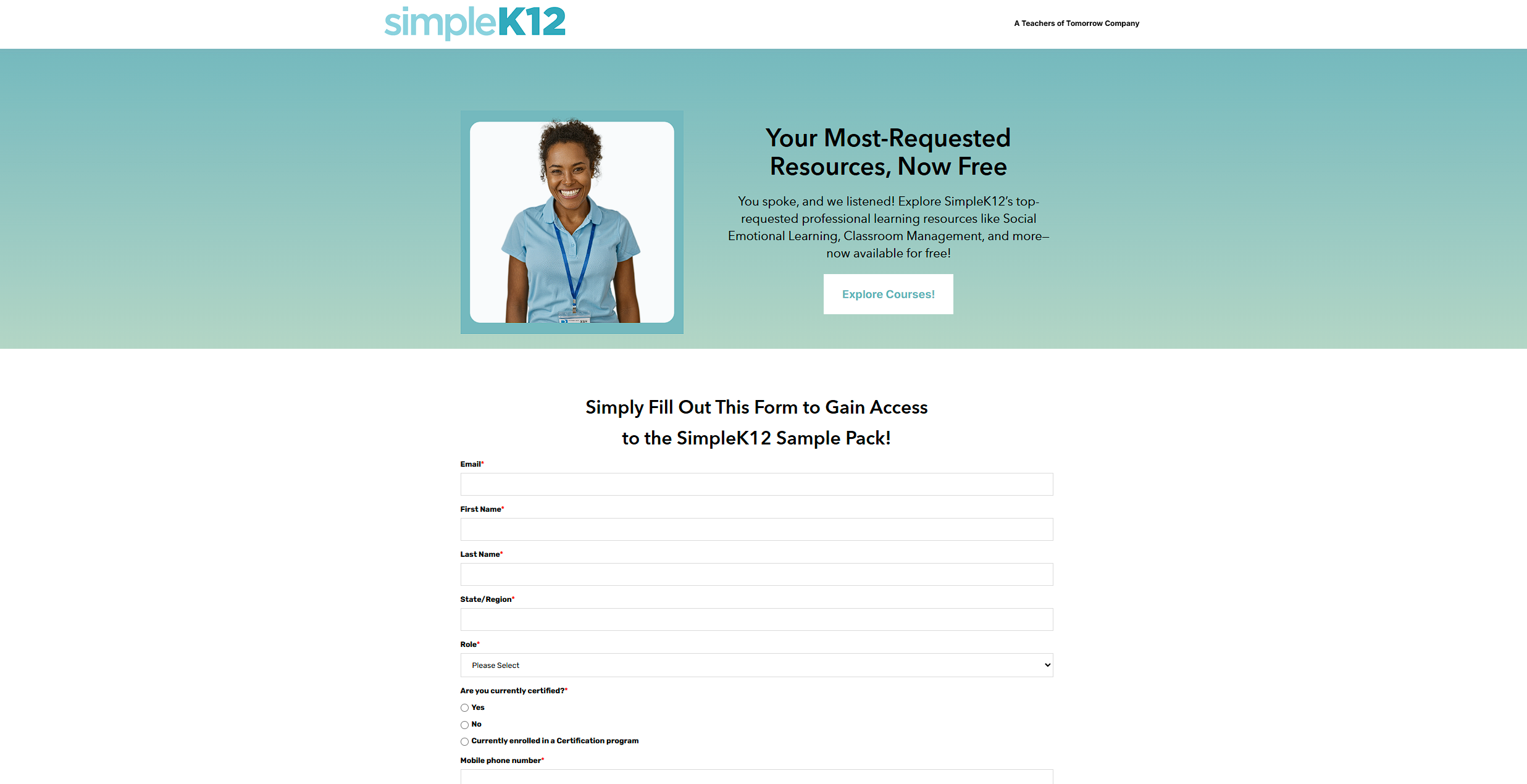 A focused landing page highlighting SimpleK12’s most-requested free resources to drive educator engagement.